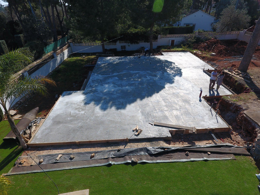 Replanteo de la losa de cimentación una vez preparada y desbrozada la parcela.